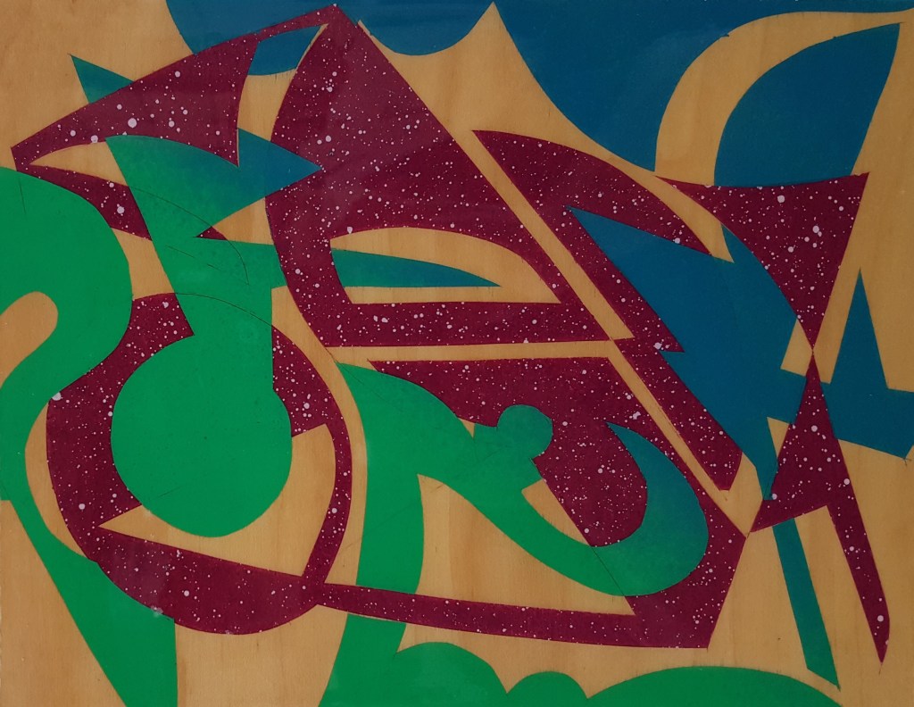 WIN 6 – 11″ x 2″ x 9″ – spray paint, resin on wood panel – $400.00