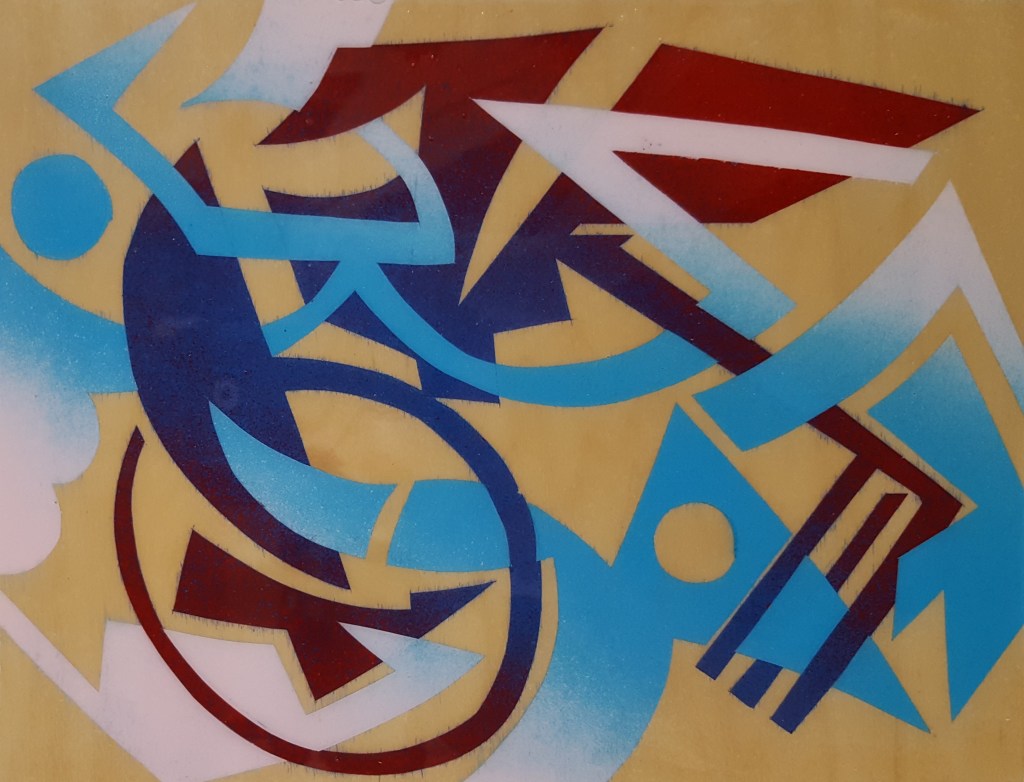 WIN 13 – 11″ x 2″ x 9″ – spray paint, resin on wood panel – $400.00
