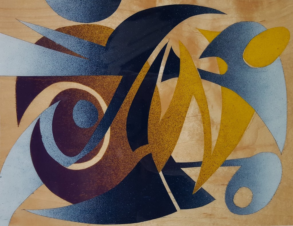 WIN 1 – 11″ x 2″ x 9″ – spray paint, resin on wood panel – $400.00
