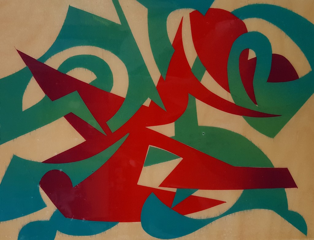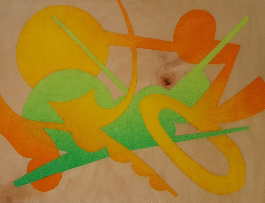 WIN 3 – 11″ x 2″ x 9″ – spray paint, resin on wood panel – $400.00