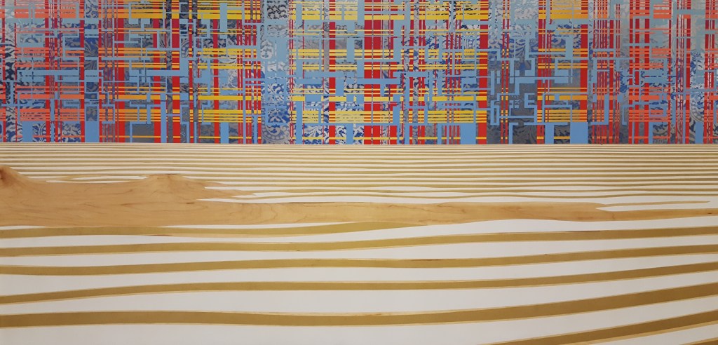 Somewhere In This Section – 11″ x 2″ x 9″ – spray paint on wood panel – $400.00