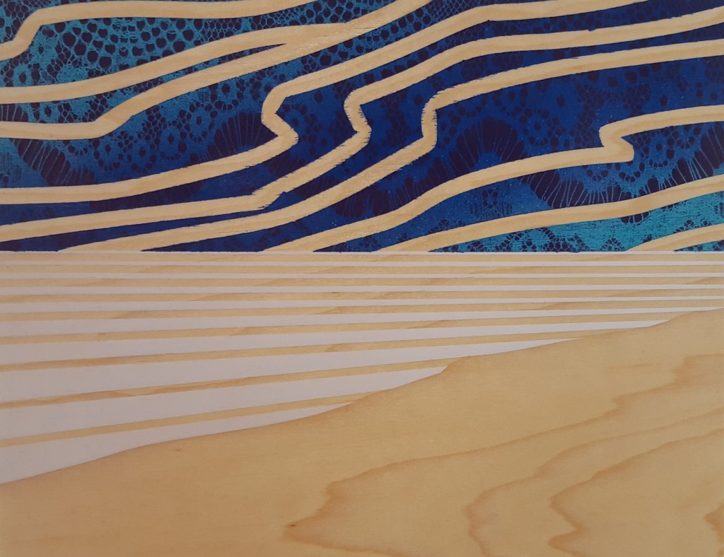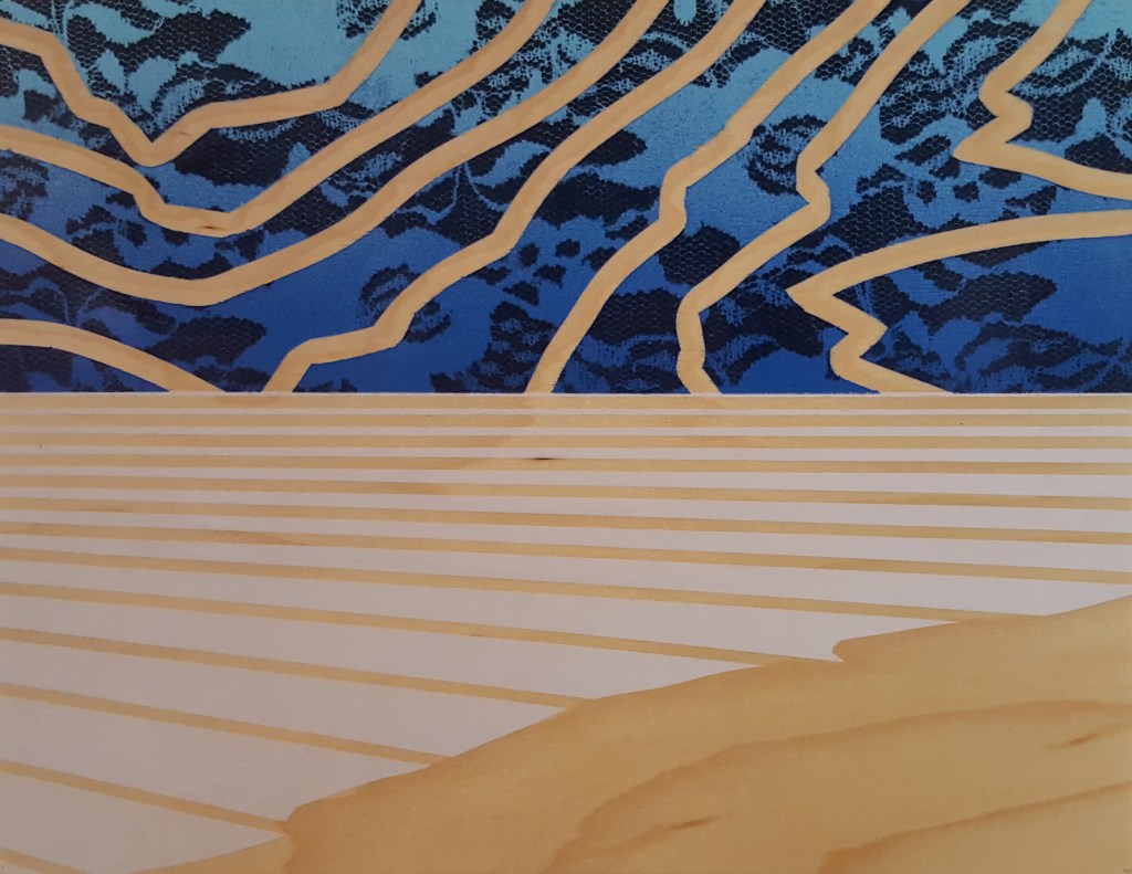 The Distance Between You And I – 11″ x 2″ x 9″ – spray paint on wood panel – $400.00