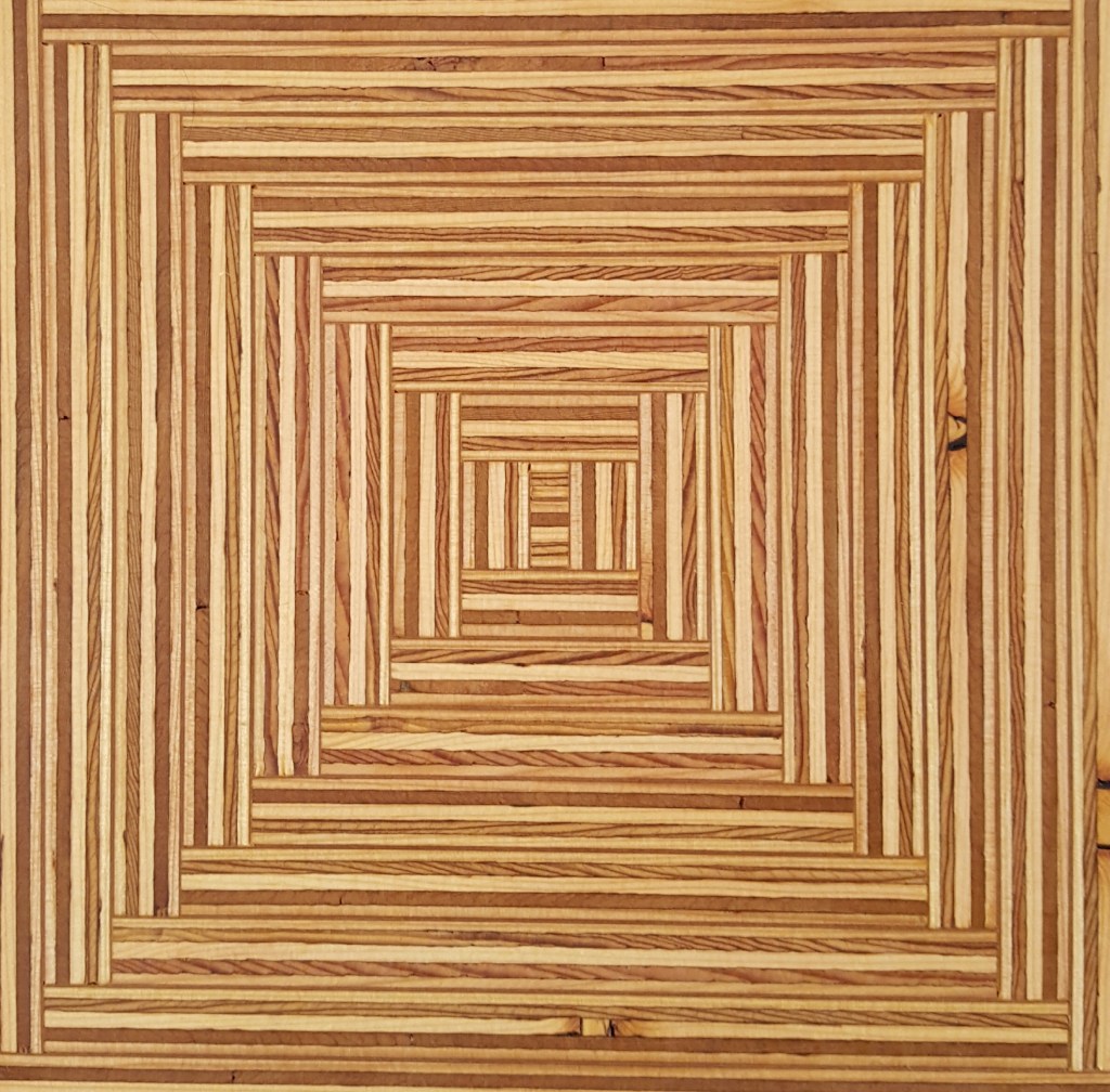 Untitled #11 – 37″ x 2″ x 33″ – segmented maple plywood on wood panel – $2800.00