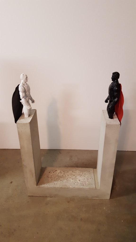 Mirror Perception – 20″ x 8″ x 26″ – plastic action figures and spray paint in reinforced concrete – $400.00