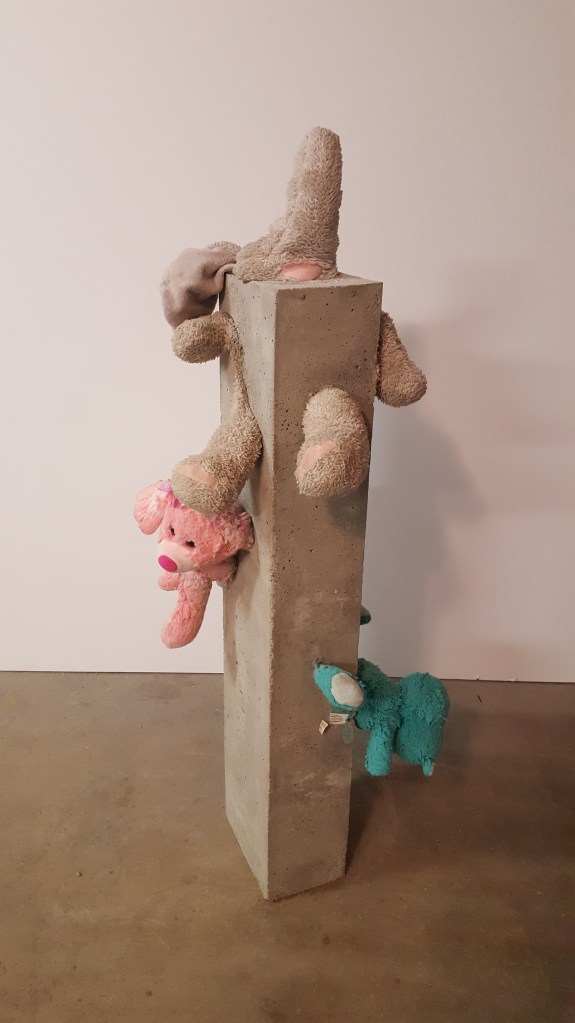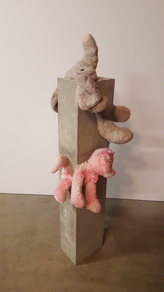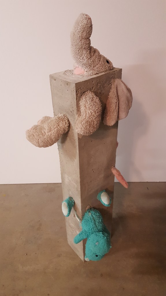 Reawakened Smile – 9″ x 8″ x 20″ – reinforced concrete and stuffed animals – $800.00