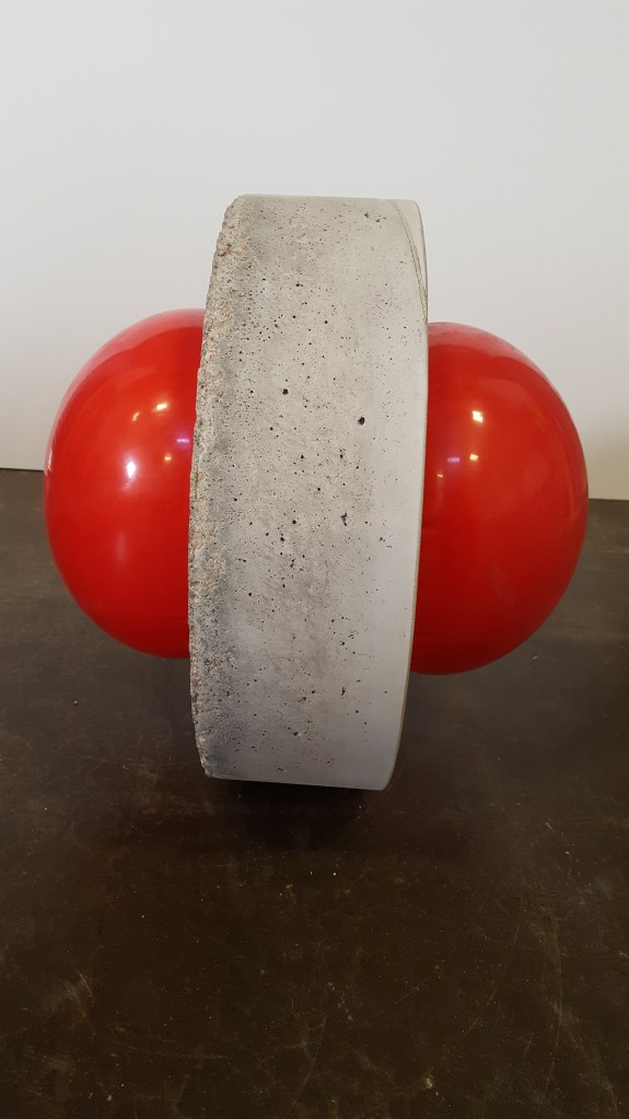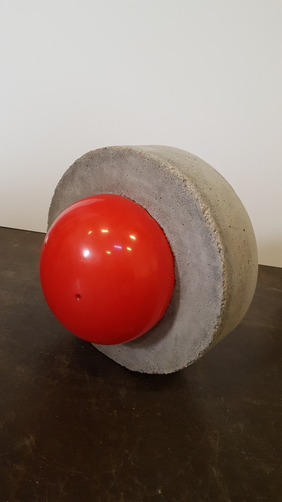 Innocence Preserved – 19″ x 19″ x 19″ – reinforced concrete with plastic kickball – $800.00