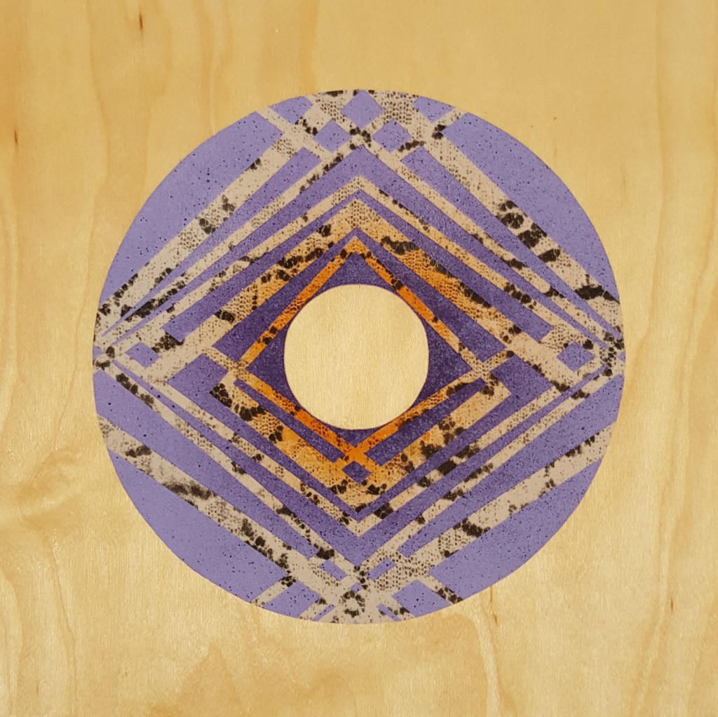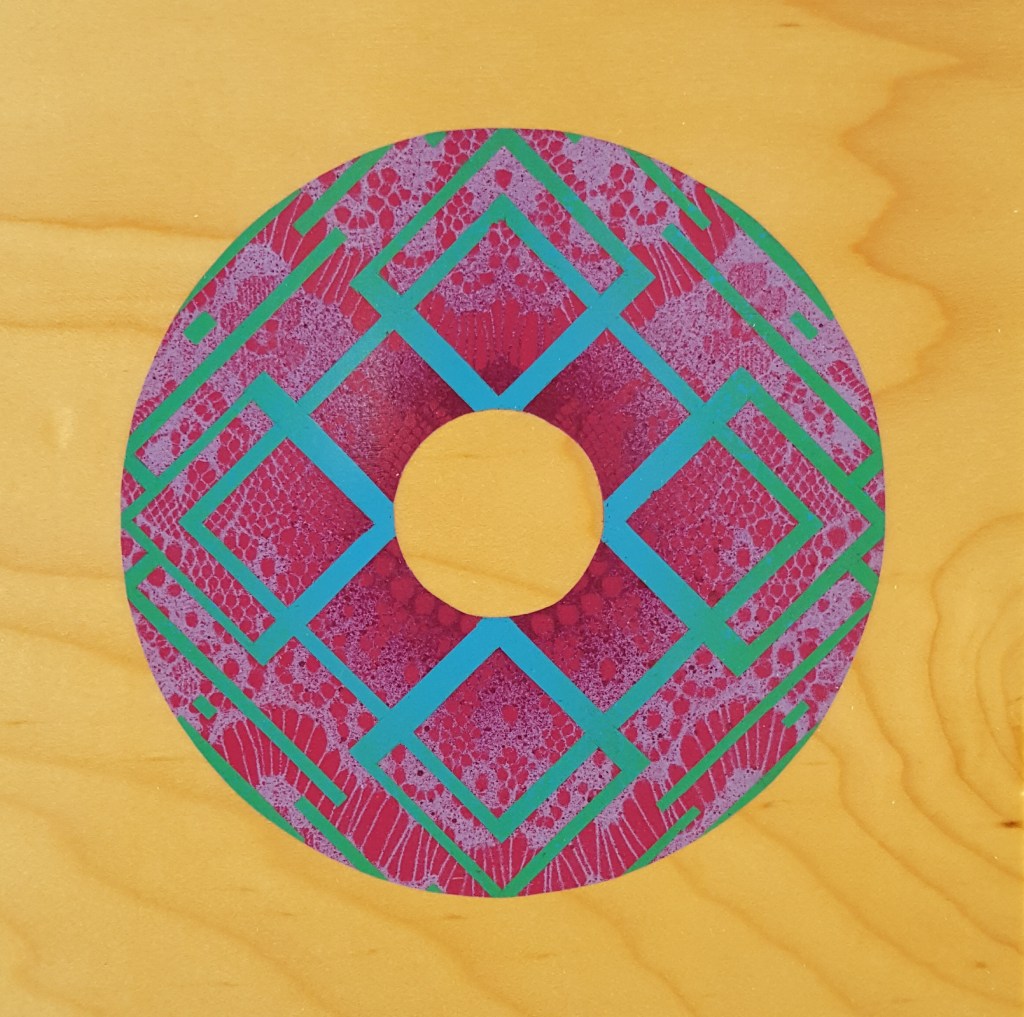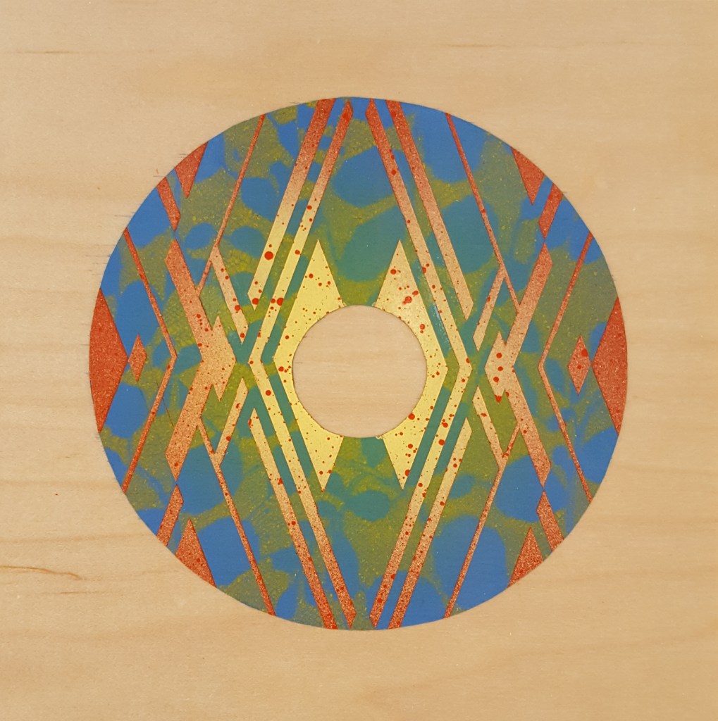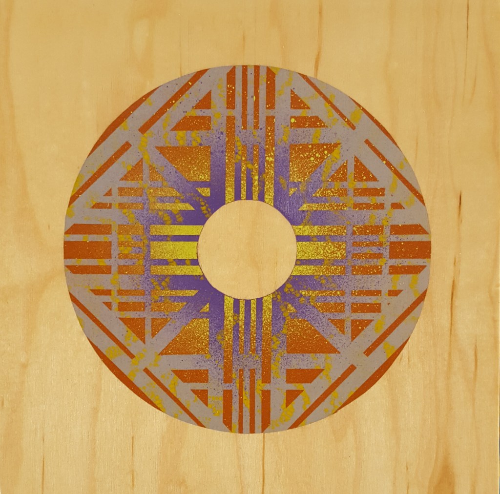 Round 25 – 8″ x 2″ x 8″ – spray paint on wood panel – $200.00