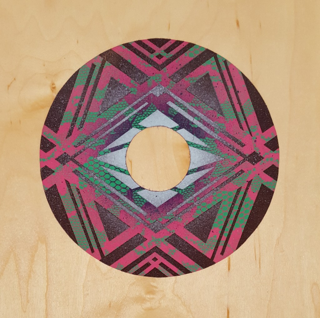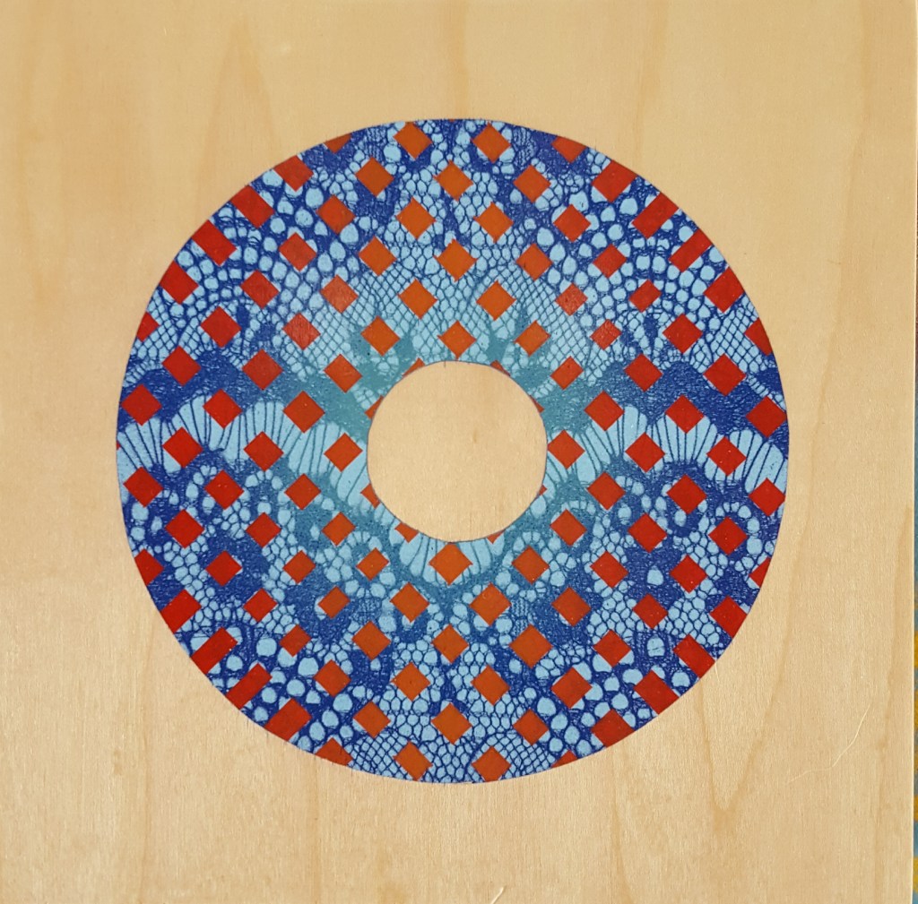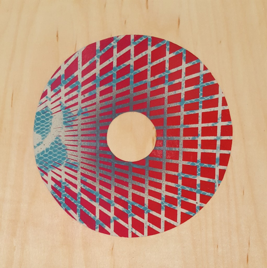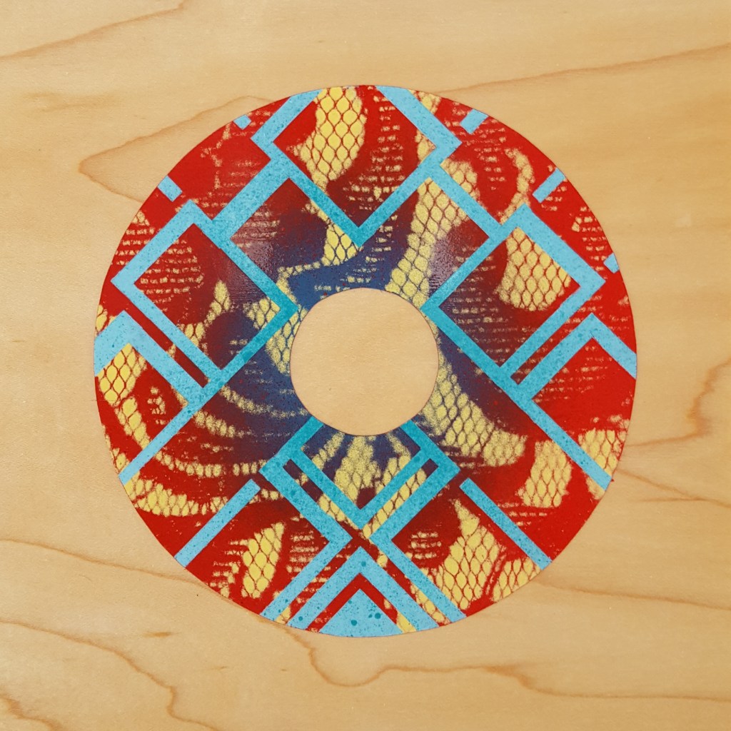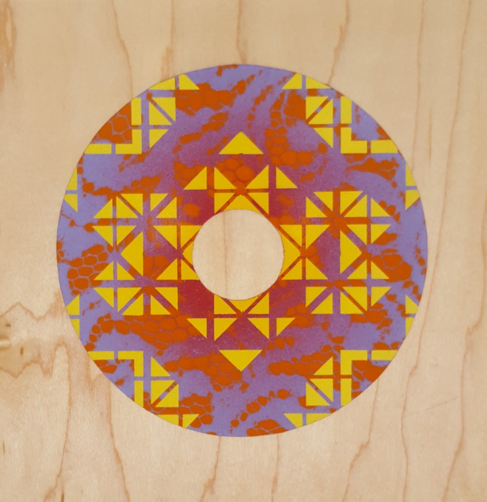 Round 25 – 8″ x 2″ x 8″ – spray paint on wood panel – $200.00