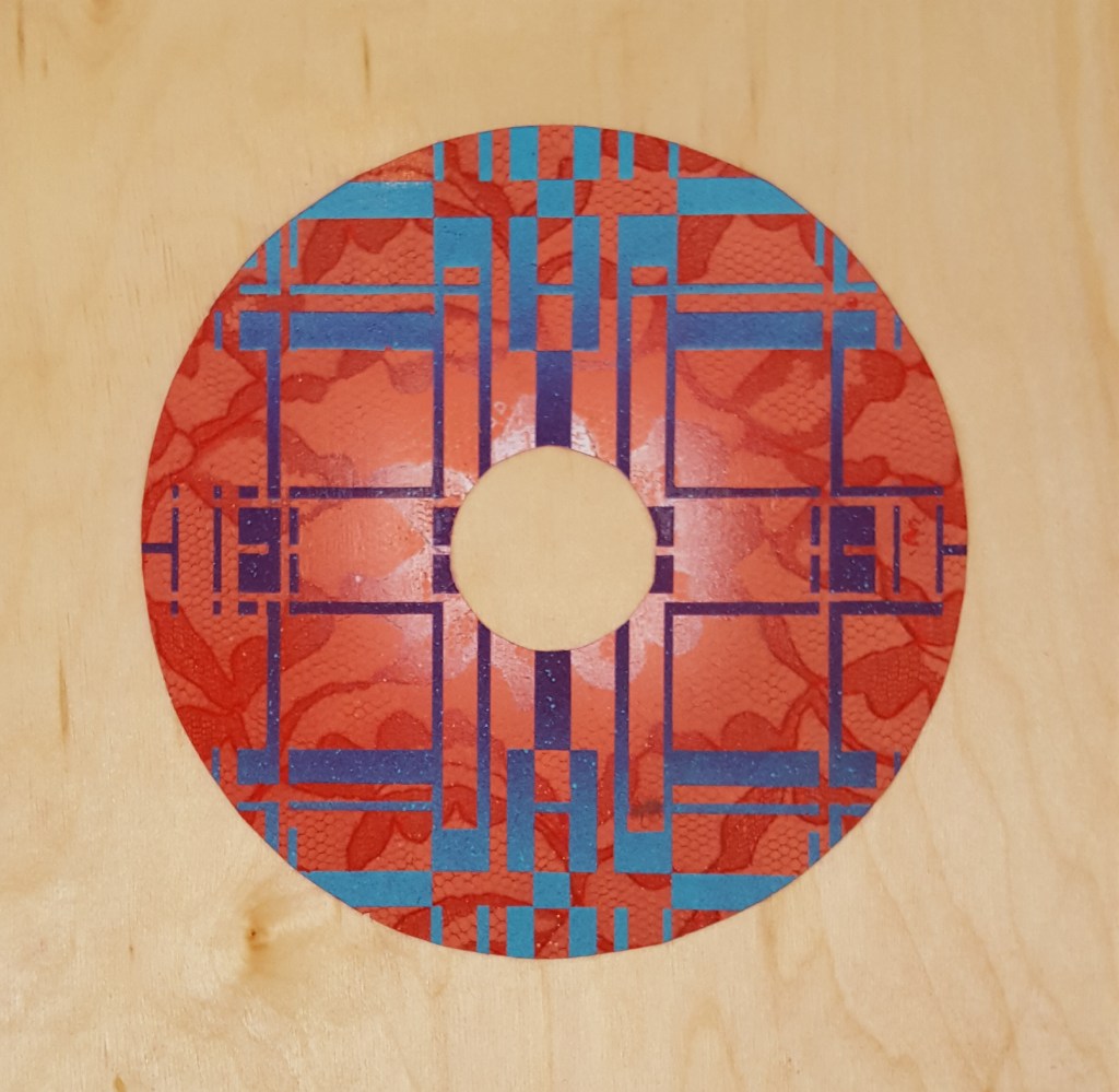 Round 30 – 8″ x 2″ x 8″ – spray paint on wood panel – $200.00