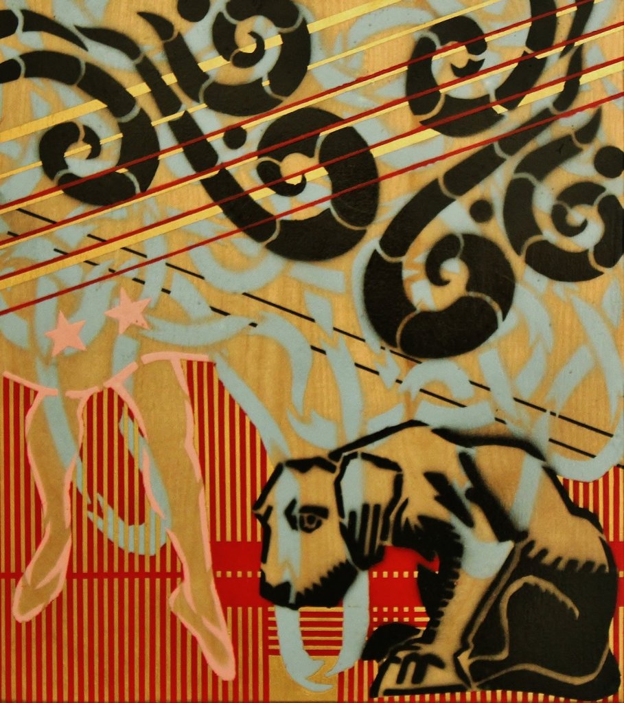 Good Girl, Bad Dog – 16″ x 2″ x 14′ – spray paint on wood panel – SOLD